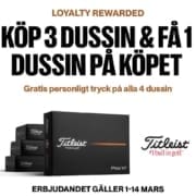 Denna kampanj erbjuder inte bara 1 dussin gratis golfbollar när man köper minst 3 dussin Pro V1, Pro V1x, Pro V1x Left Dash eller AVX, utan nu dessutom gratis personligt tryck på samtliga 4 dussin.